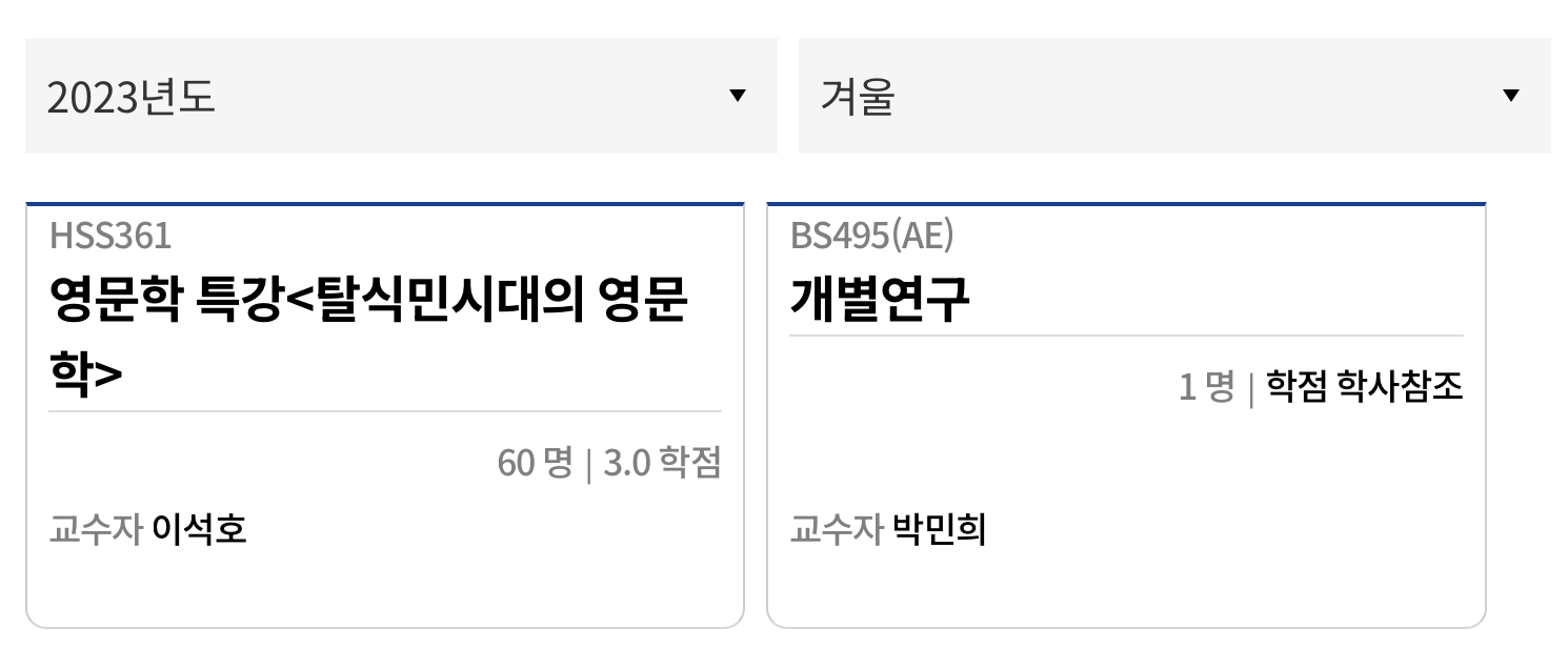 그래서 듣는과목은 영문학 특강 <탈식민시대의 영문학>이랑 뭐 과목은 아니지만 개별연구